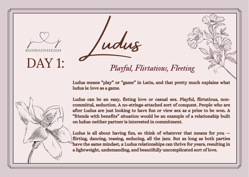 For Twitter posting, please use #JohnJaeWeek2022 #DayX (X indicating the day of the theme you’re joining). We’ll then include your entry in our daily compilation thread.