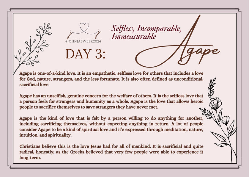 #JohnJaeWeek will take place over the course of one week starting the 8th of February to the 14th. Each day will have a theme that people can contribute to and will be up to the creator’s interpretation. There will be no sign-ups or check-ins to make this fest hassle free as much as possible!